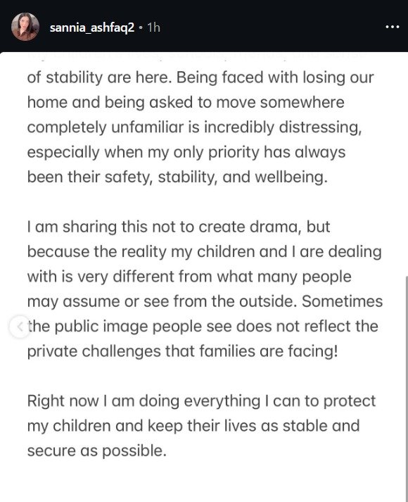 Sannia Ishfaq said the possibility of losing their home has caused deep stress. She believes moving to an unfamiliar place will increase the emotional pressure on the children.